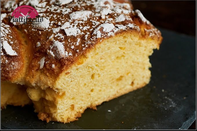 Ingredienti: 380 g di farina x dolci, 3 uova, 100 g di burro, 200 g di zucchero, la scorza grattugiata di un’arancia o di un limone, 150 g di mandorle pelate, 100 g di scorza d’arancia candita, un bicchierino d’amaretto di saronno, una bustina di lievito in polvere x dolci, un bicchiere di latte, un pizzico di sale, 100 g di granella di zucchero.